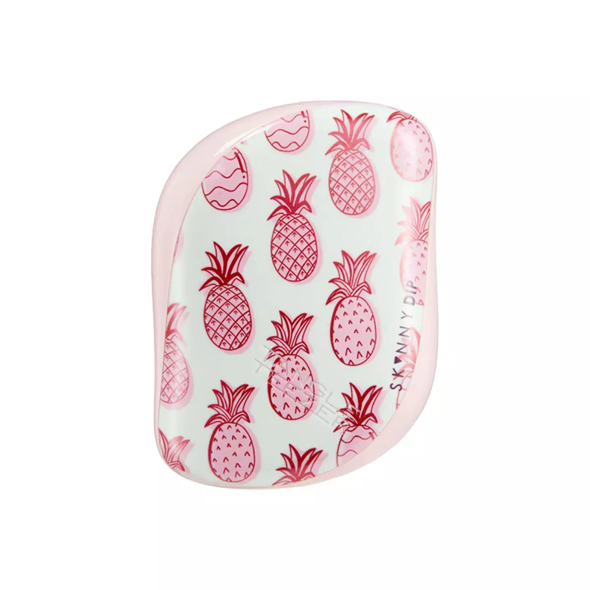Расческа Tangle Teezer Compact Styler — незаменимый аксессуар, который удобно носить с собой! Уникальные двухуровневые зубчики позволяют бережно расчесывать волосы, делая их мягкими и шелковистыми. Благодаря компактной форме расческа поместится в любую сумочку, а плотно прилегающая крышка защитит зубчики от пыли и повреждений. Модель Compact Styler Skinny Dip Pineapple представлена в розово-белом цвете с ананасами.