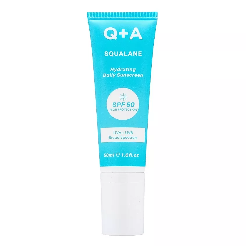 Солнцезащитный крем для лица со скваланом Q+A Squalane SPF50 (50 мл) — это увлажняющий крем для ежедневного использования с очень высоким уровнем защиты SPF50 РА ++++.